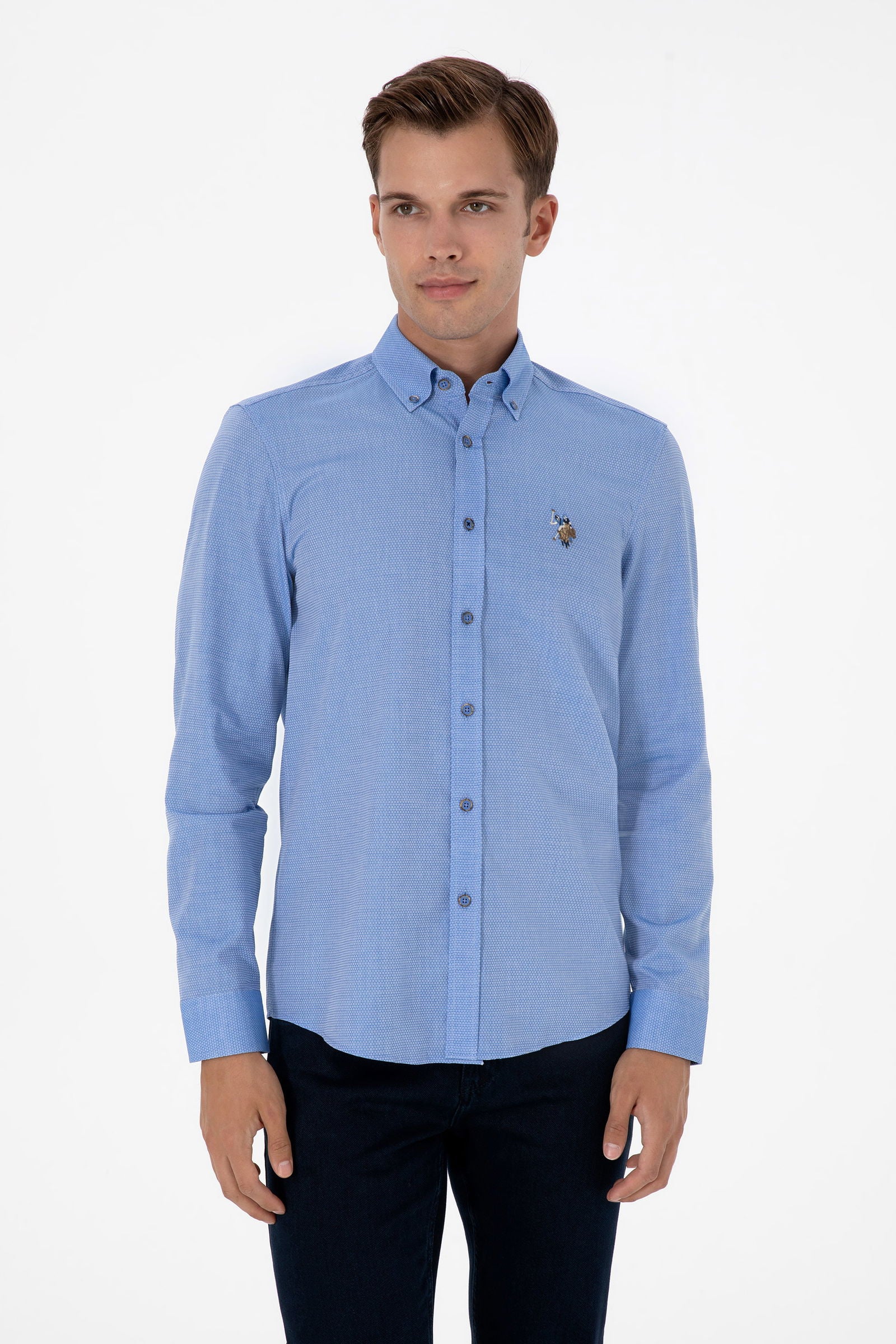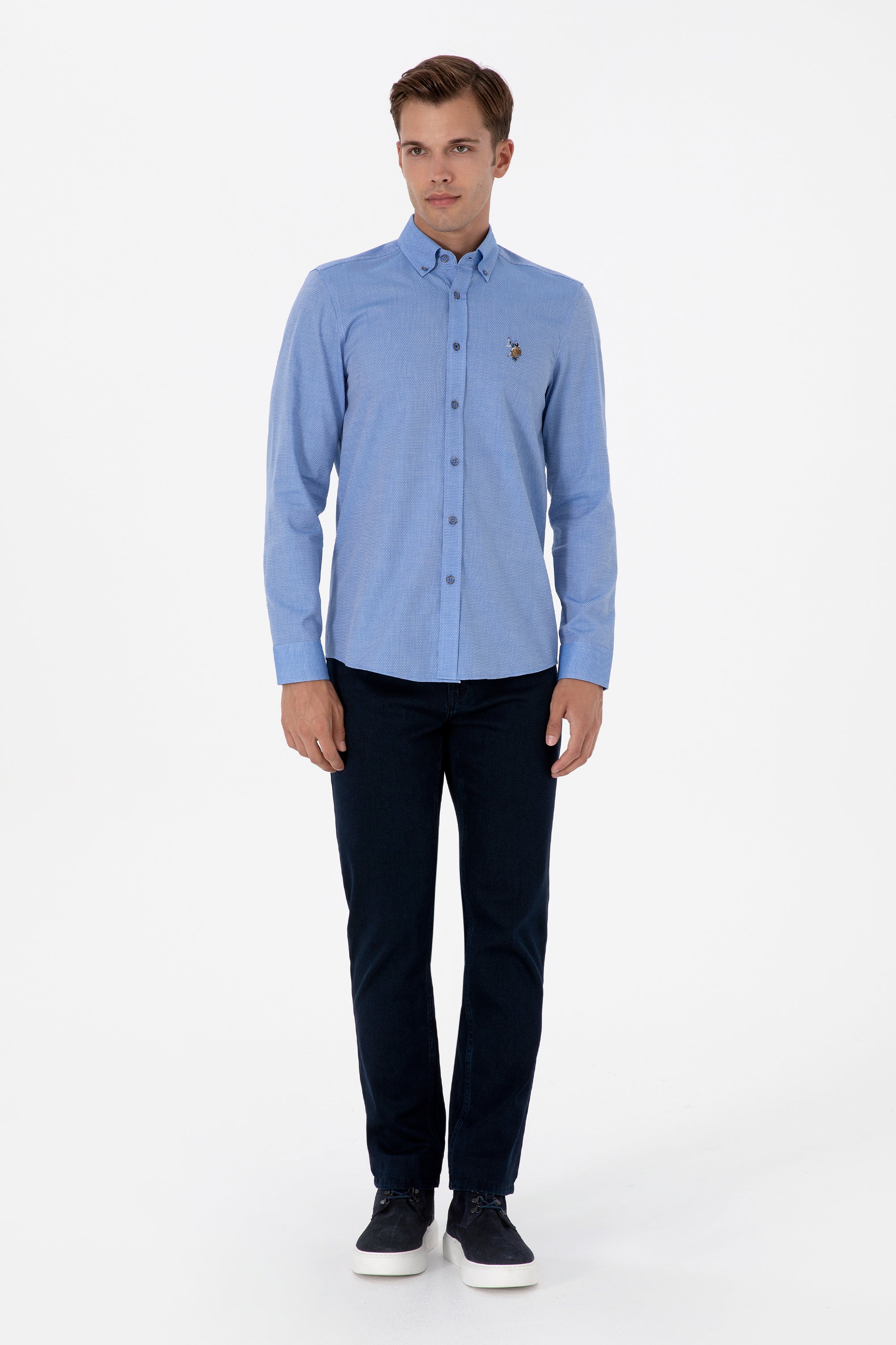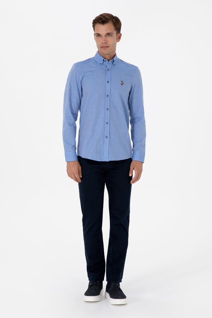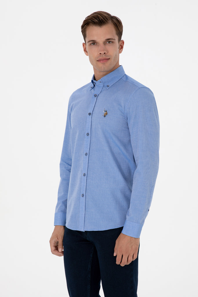 Modra Moška Srajca Z Dolgimi Rokavi